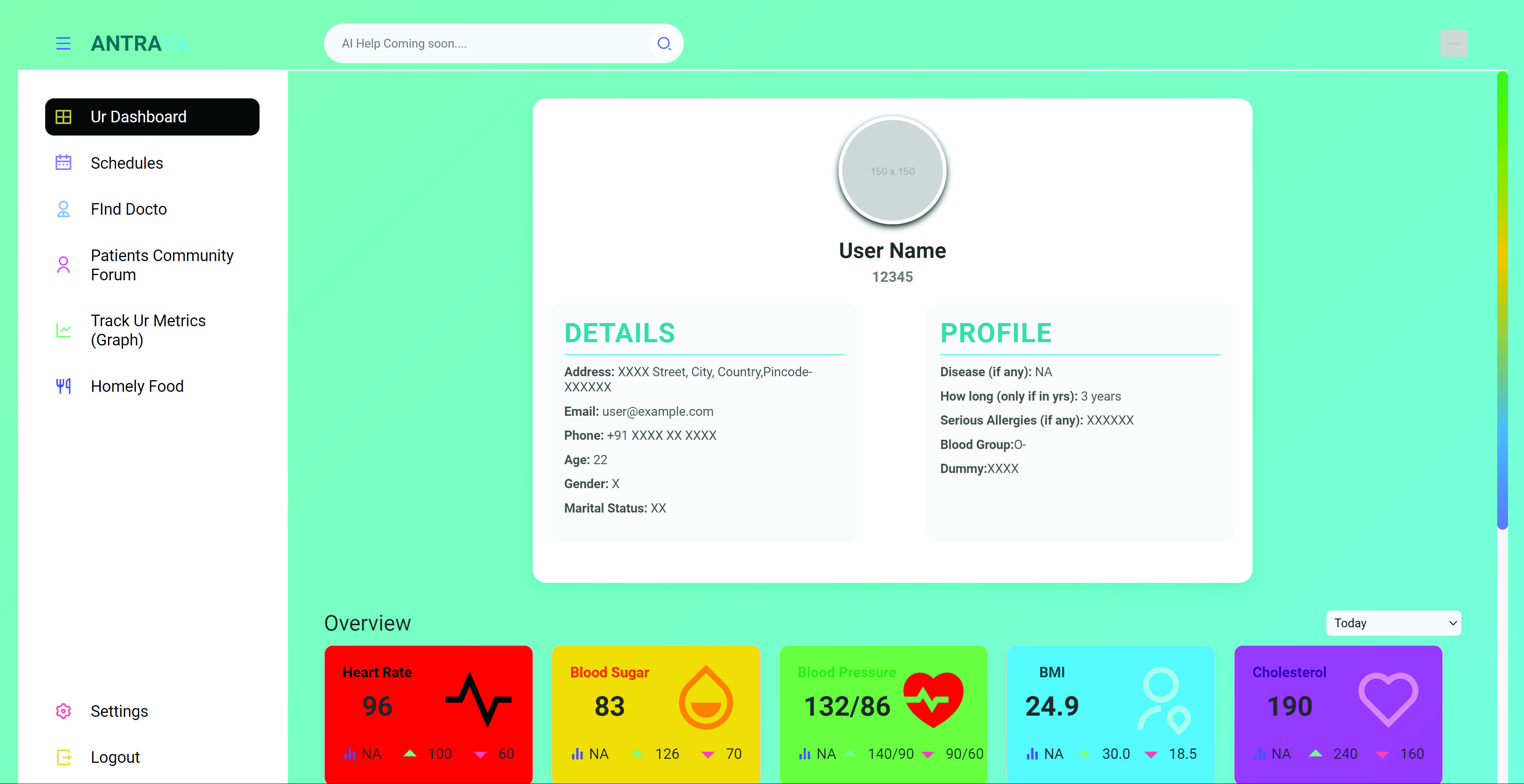 A simple client dashboard that is accessible for free using the web where clients can use functions to note there basic metrics and save presciptions and reports at one place.