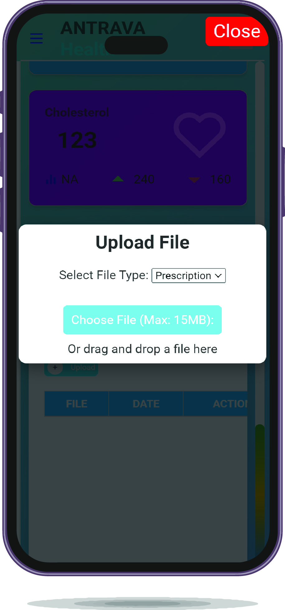 Upload prescriptions,report and other medical related documents in one place with limited storage and arrangement facilities.
